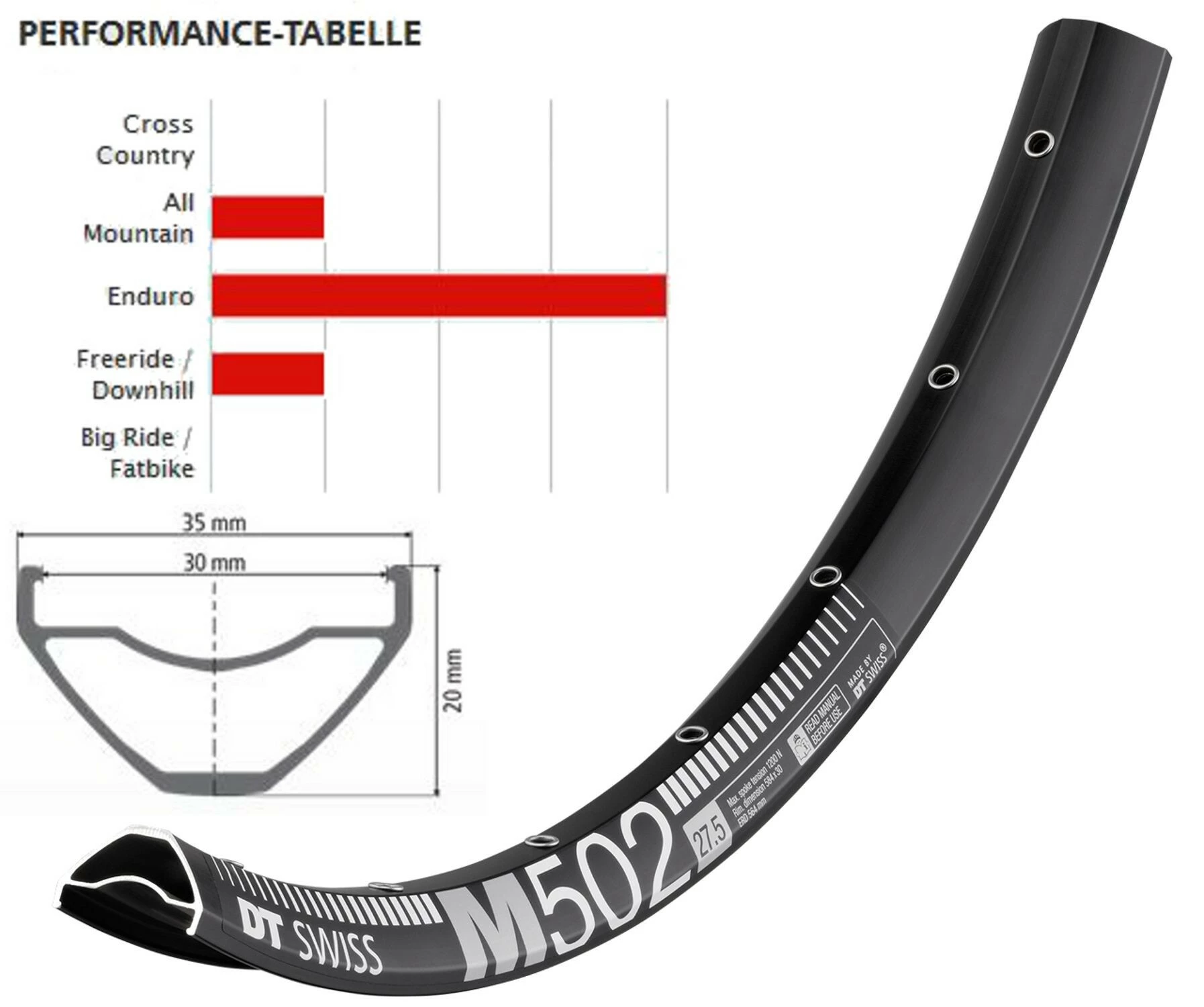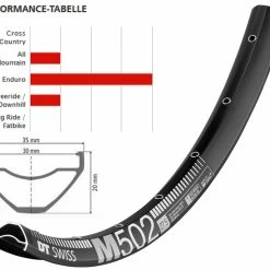 Lige bred nok, lige let nok. Med en mundingsbredde på 30 mm er M 502-fælgen egnet til alle dæk fra brede til temmelig brede – så du kan angribe de hårdeste terræner. Materialer af høj kvalitet kombineret med en sleved fælgforbindelse giver et uovertruffent forhold mellem lav vægt, bred fælgbredde og lav pris.
